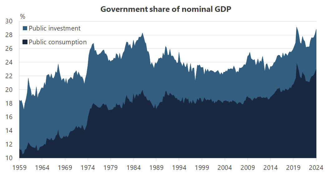 So, what can be done about it? Instead of obsessing over GDP and a “soft” or “hard” landing the focus should be on raising living standards, and unless you’re spending big on infrastructure that will raise future productivity, you don’t do that by increasing the government’s share of the economy from already-elevated levels.