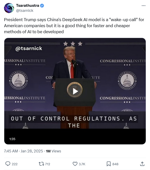 AI journalist Tim Lee even suggested that the Nvidia rout had more to do with Trump than China: