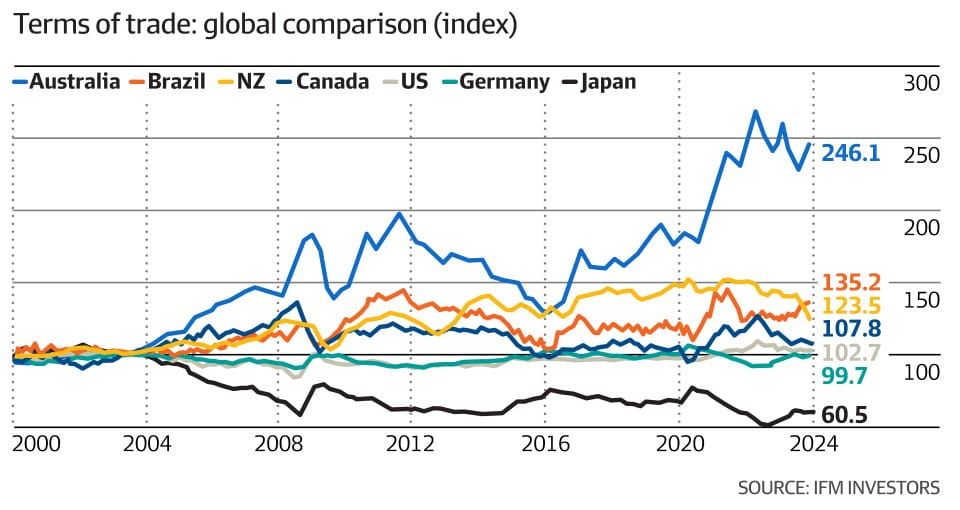 By not banking a headline surplus, Chalmers is doing precisely the opposite of what is needed to help get inflation back down. And he has no excuse: last week, the AFR included the following chart showing just how fortunate Australian Treasurers have been since the mid-2000s. No one has had better luck than Jim Chalmers: