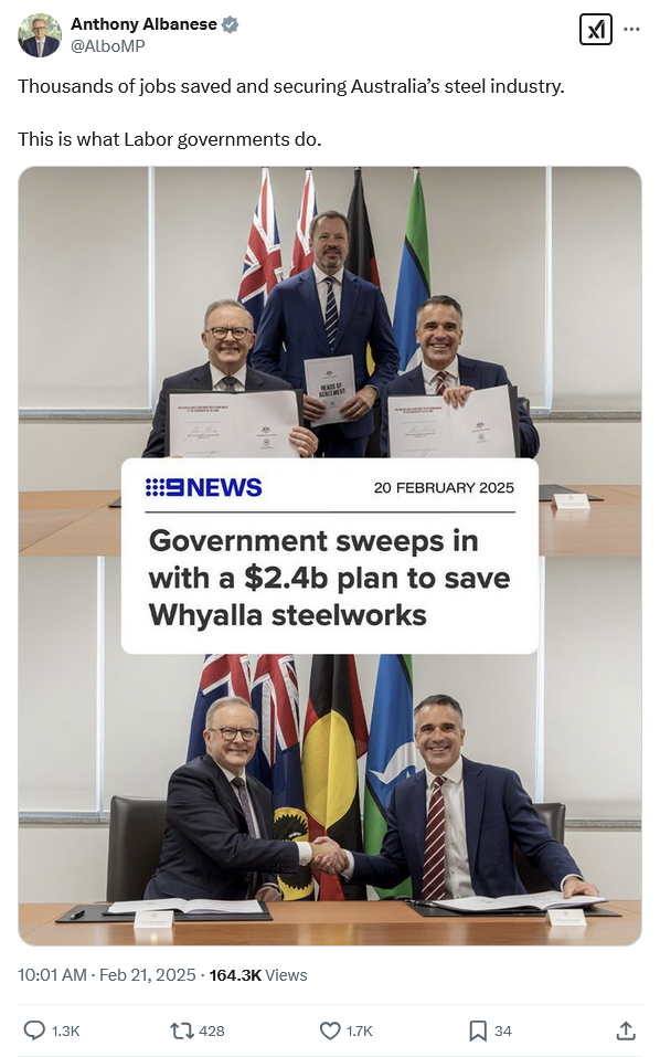 First Rex, now Whyalla. At this point, a Future Made in Australia should be renamed a Much More Expensive Future Made in Australia.
