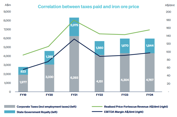 You can see that the federal government also benefits greatly from high commodity prices in this chart courtesy of FMG, which is about as close to a pure iron ore play that Australia has:
