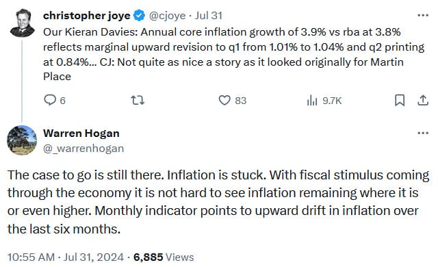 Unfortunately, there isn’t much the RBA can do to fix such an outcome. It can make it worse if it keeps monetary policy too tight for too long (i.e., above the natural rate), and it may well fall into that trap given there’s probably at least several months of ‘sticky’ inflation left to flow through the aggregates and they don’t meet for seven long weeks, during which the current cash rate could quickly become inappropriate.