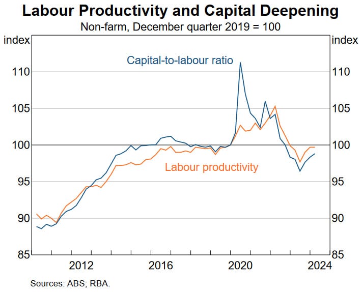The RBA rightly worries that wages growing so much faster than productivity will make it difficult to get inflation “sustainably” back to its target. But it should also be worried about what the lack of productivity means for employment, the economy and growth.