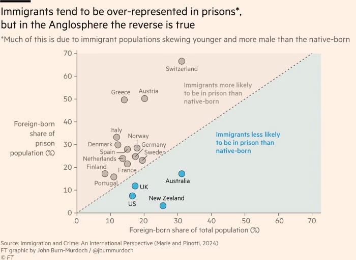 We in Australia talk a lot about “migration”, but not all migration is the same. Australia and the other Anglo’s have done quite well in the past, which is perhaps one reason why we sit near the bottom of this chart: