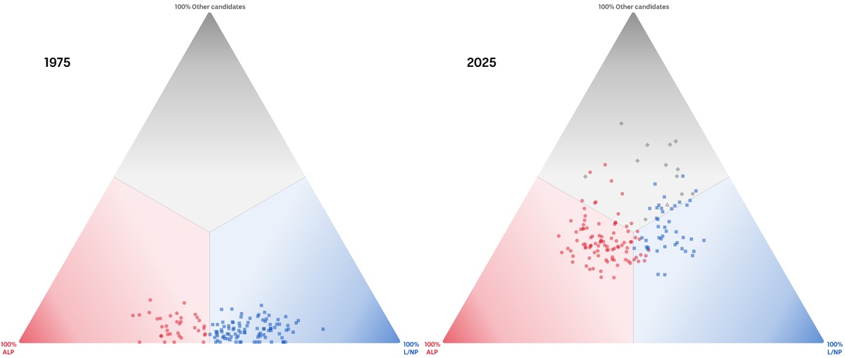 There’s a strong trend in Australia for voters to shun the two major parties in favour of independents. In the 2025 election, the “other” vote was around two percentage points higher than it was in 2022. But it was more than double the 2007 vote, and nearly eight times what it was in 1975: