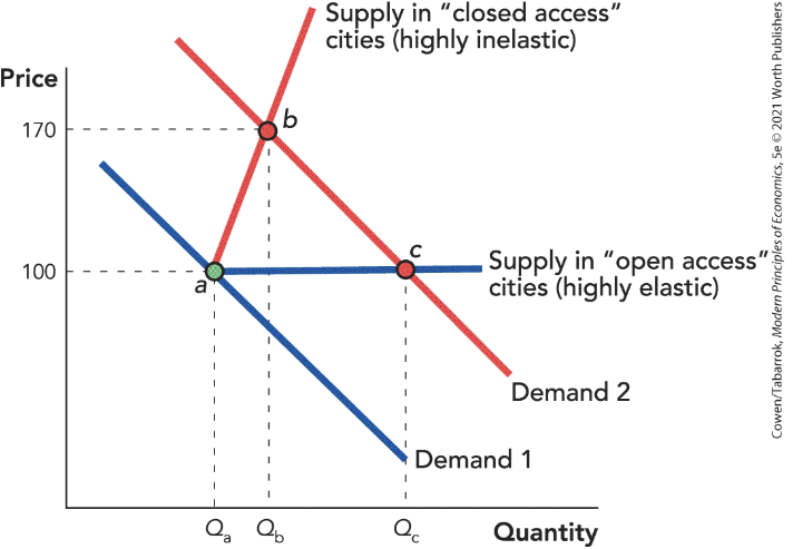 This isn’t a controversial view. There is strong empirical evidence of this happening every time a government tries to stimulate housing demand in Australia’s supply-constrained (inelastic) market. It’s also in any introductory economics textbook—equilibrium will move from point a to point b:
