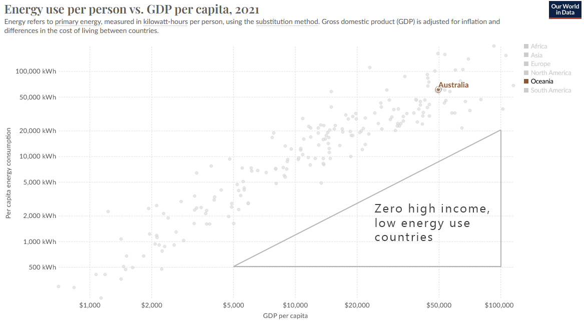 Dimery issued that warning without considering the delays in transitioning; the fact is renewables will cost households more than coal, and we will have to adjust accordingly. On that depressing note, here’s your friendly reminder that no economy has ever become or stayed rich while using less energy.
