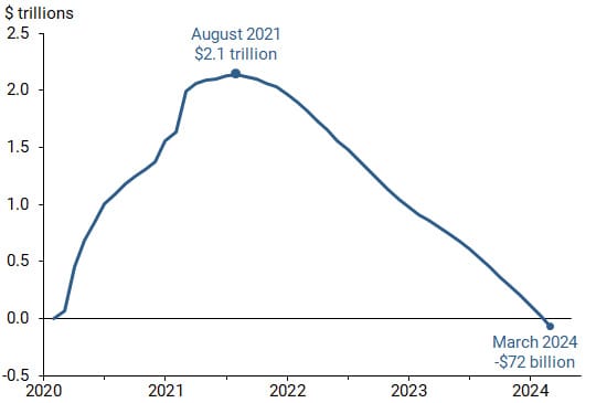 “[T]he depletion of these excess savings is unlikely to result in American households sharply cutting their spending levels as long as they are able to support their consumption habits through continuous employment or wage gains, other forms of wealth—including non-pandemic-related savings—and higher debt.”