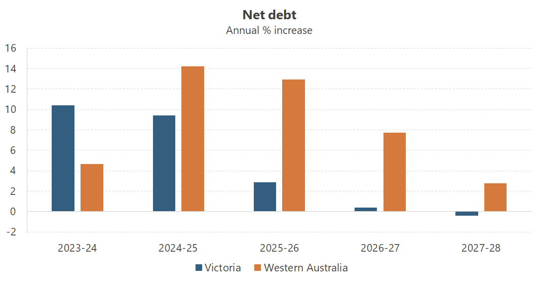 As a result, net debt will continue to increase in both states across the forward estimates.