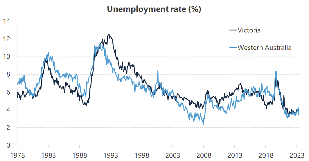 But what really irks me is there is no good reason for such fiscal profligacy in either state. It’s just not the time for cash handouts, and while it’s true that both are spending significant sums investing in fixed assets, it’s not clear (1) that much of it is needed (e.g. WA is expanding heavy loss-making Metronet lines to the low-density outer suburbs, while VIC’s Suburban Rail Loop fails any reasonable estimate of costs and benefits); and (2) that much of it is needed now (unemployment rates have been at, or close to, all-time lows in both states for nearly three years).