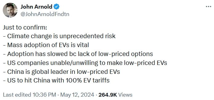 There is only one word that can explain Biden’s move: jobs, because there’s certainly no economic justification for these tariffs. And when I say jobs, I mean protecting American manufacturing companies and the union workers they employ in politically strategic regions of the US, at the expense of Chinese producers, American consumers ( especially the poor), and in this case, the environment too.