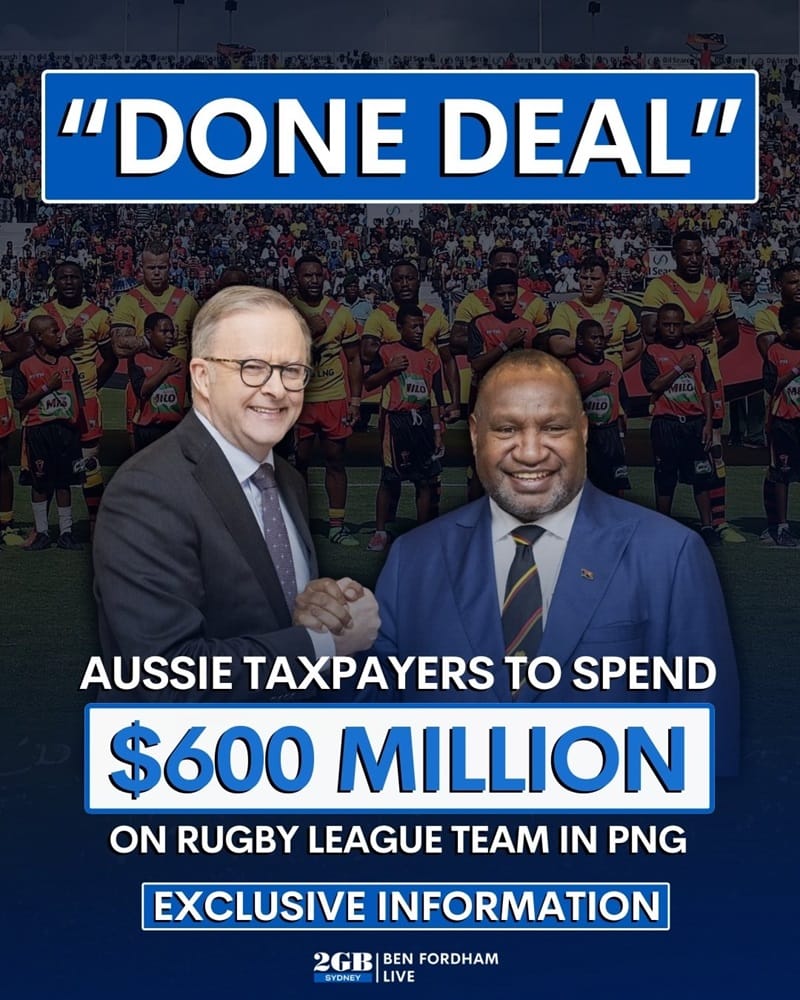Ah, “soft diplomacy”. Much like national security, is there any use of taxpayer’s dollars you can’t justify by promising something completely unquantifiable, with no consideration for the trade-offs? Here’s the latest entry, a $600 million gift for a new rugby league team in Papua New Guinea (PNG):