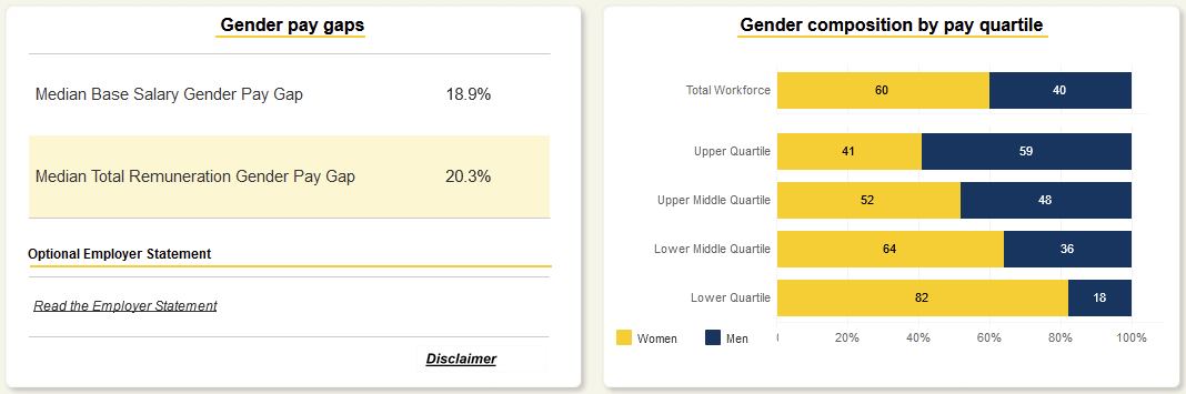 Australia’s Workplace Gender Equality Agency (WGEA) published a dashboard containing a trove of private sector employer gender pay data on Tuesday, with the headline figure showing a gender pay gap of 21.7%. It’s an impressive amount of data and you can even break it down by company; for example, here’s a snippet of the pay gap and gender composition of Australia’s largest corporate, BHP: