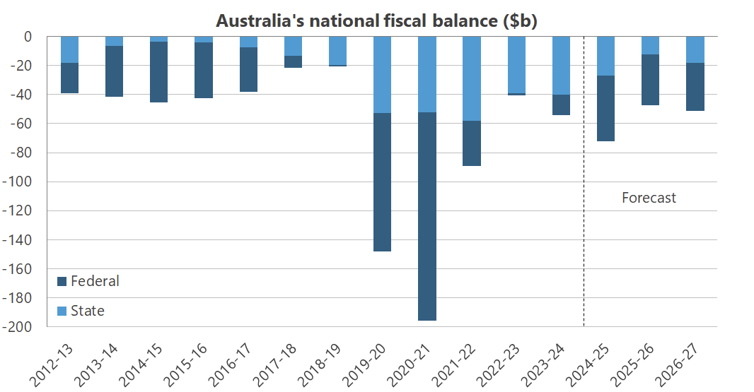 Finally, substantial ongoing fiscal deficits may require a steady or higher cash rate rather than cuts. Deficit spending without a credible plan to pay back the debt generates inflation, and eventually interest rates have to follow.