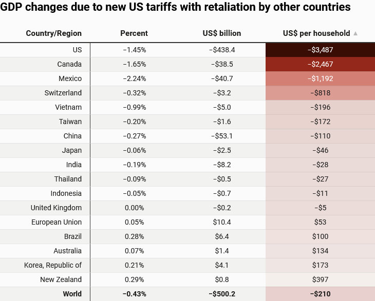 But it won’t be all bad. AUT economics professor Niven Winchester estimated that Australia will be one of the largest beneficiaries of Trump’s tariffs, likely because we just became a much more attractive destination for goods from many countries. We’ve essentially been gifted a big boost in relative purchasing power, and because we didn’t trade all that much with the US to begin with, the downsides for our exporters are limited: