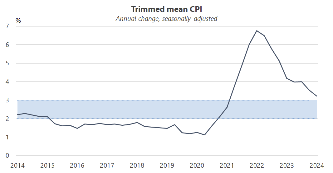 In the December quarter, the trimmed mean indicator increased by 3.2%, only slightly above the RBA’s target band: