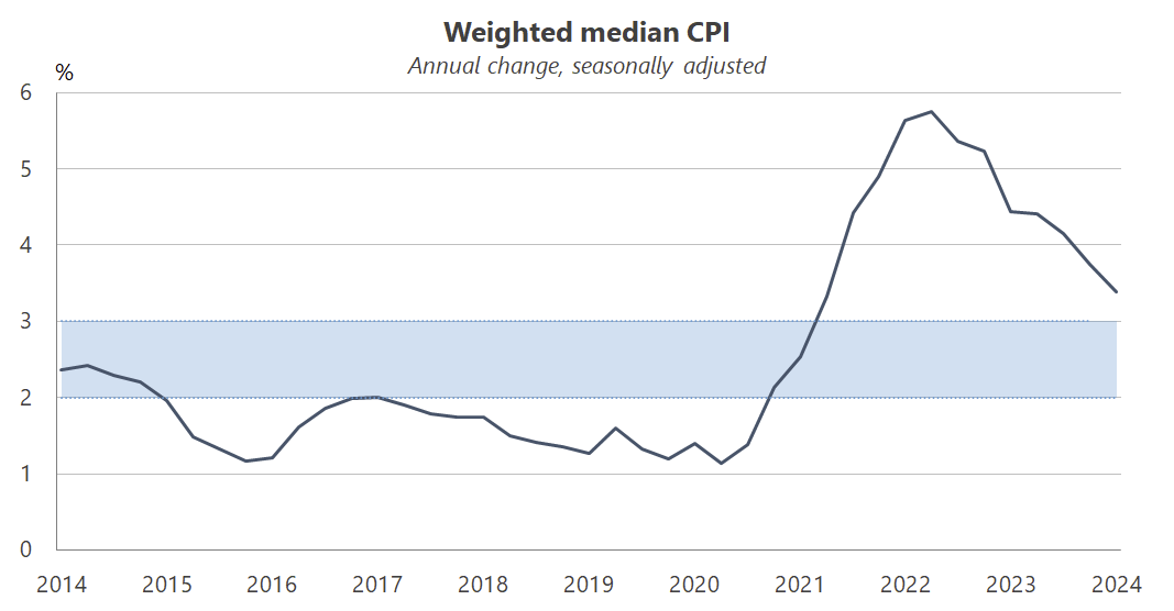Monash university’s Zac Gross, who has studied the historical data, recommends using the weighted median as it “is a much harder statistic to manipulate and provides a clearer picture of underlying inflation trends”.