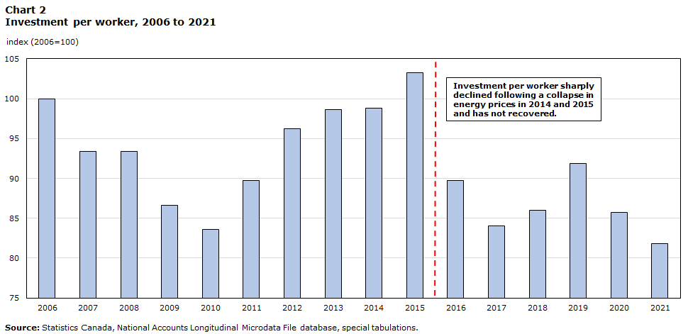 Most notably, there was a large, permanent drop in investment per person in 2016 following a collapse in energy prices during China’s last slowdown and the rapid growth in Canada’s population: