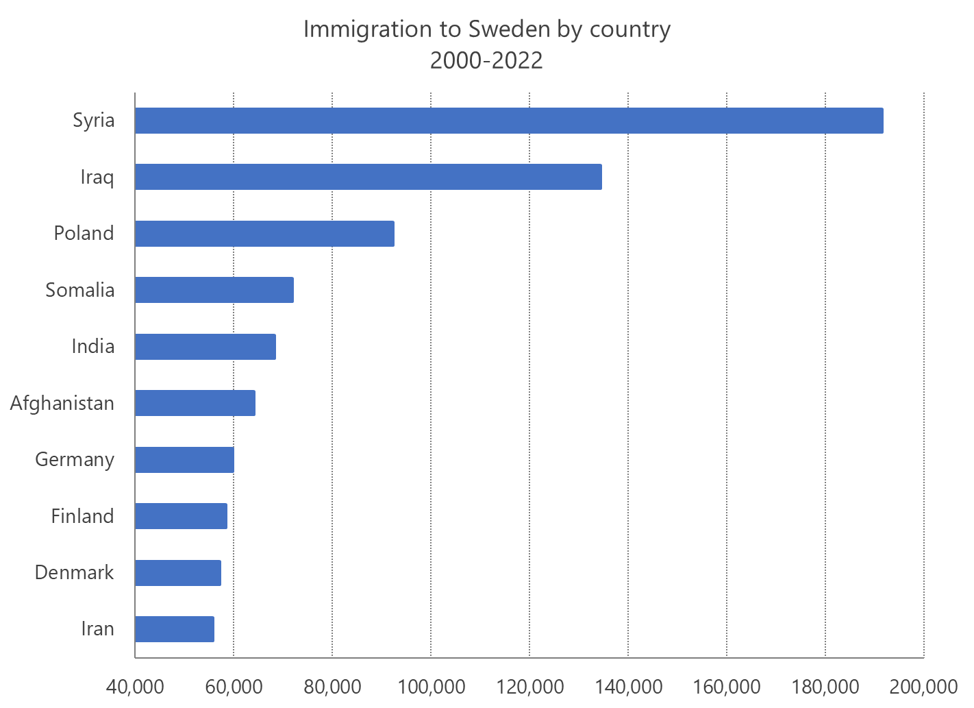 Data from Sweden’s statistical office shows from where Sweden’s migrants have been coming: