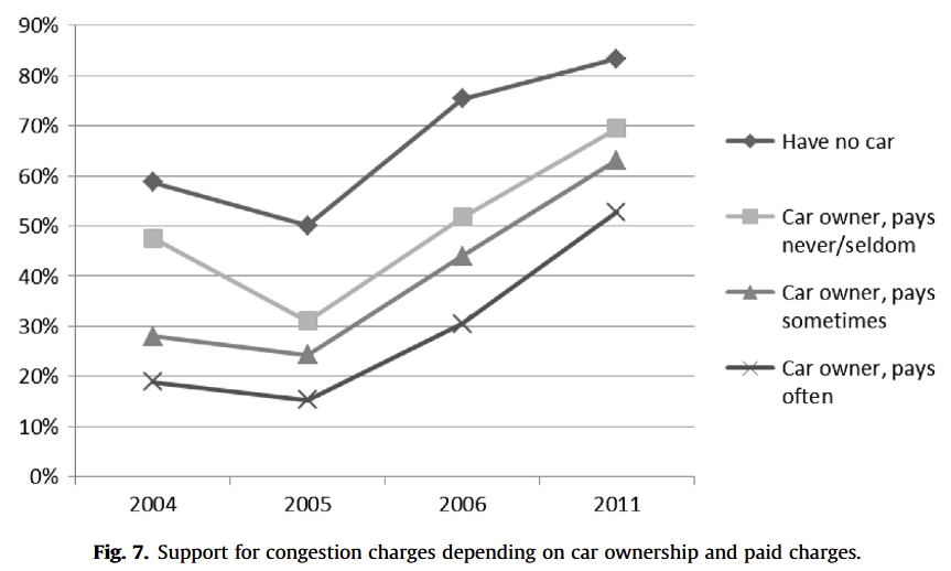 That’s consistent with the academic literature, which shows that “public support for congestion charges increase substantially after charges have been introduced”: