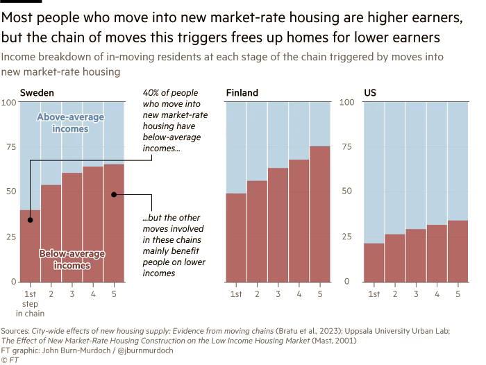 One problem with the current approach being adopted by many states is that they’re targeting specific areas for high density (often bypassing local government in the process), while leaving the vast majority of the adjacent land zoned for low density detached housing. That risks creating eye-sores and stirring up local angst, as developers push the boundaries on what is suddenly quite expensive land. A more sensible approach, as was successfully executed in Auckland, would be to up-zone all land to at least medium density. That would prevent the price of land rising as much, encourage development to spread out more evenly, and reduce the visual differences between existing and new housing.