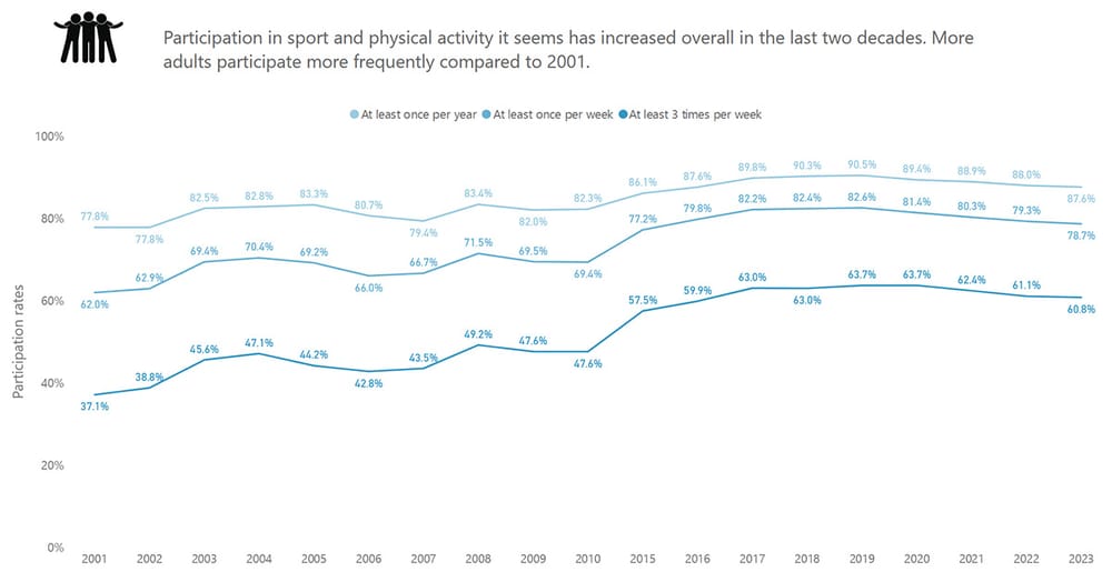 I just don’t get this. There are around 10% more Australians engaging in regular physical activity than there were in 2001 (i.e. well before social media). 93.7% of kids aged 15-17 participate in physical activity at least once a year, and around 85% of those aged 5-14 (yes it’s a big, diverse cohort but those are the data we’ve got).