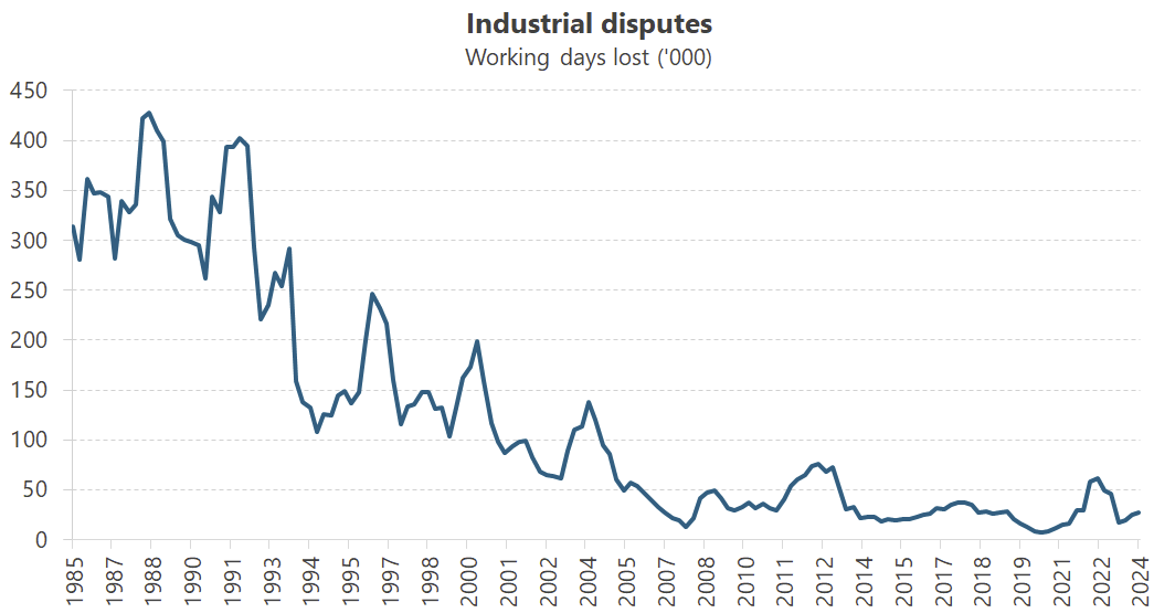 Basically, the most destructive union practices were made more difficult to achieve. Post-reforms, unions were supposed to be limited to providing value for workers and employers without the large, economy-wide costs such as prolonged strikes that dominated the 70s and 80s: