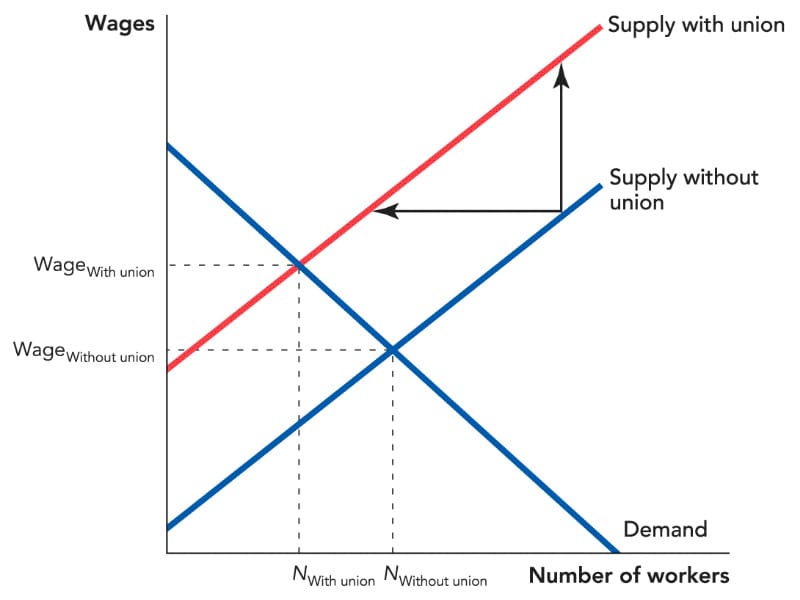 How do unions restrict supply? Through special privileges granted to them by the government. In Australia, those privileges aren’t anywhere near as strong as they once were: major reforms in the 1990s banned unions from forcing employers to hire only union members, effectively eliminating compulsory membership and their ability to be a true labour cartel.
