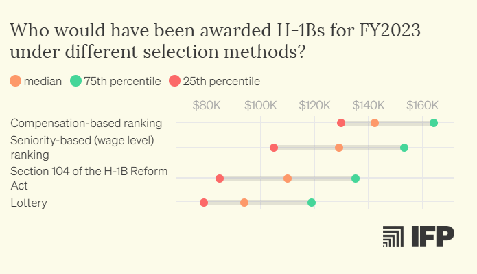 For those not familiar with the US immigration system (why would you be!), H-1B is a visa class that firms can use to hire foreign workers “to perform services in a specialty occupation”. In 2024 there were nearly 800,000 applications for the 65,000 annual spots (plus another 20,000 for those with advanced degrees), with the successful applicants selected via a lottery.