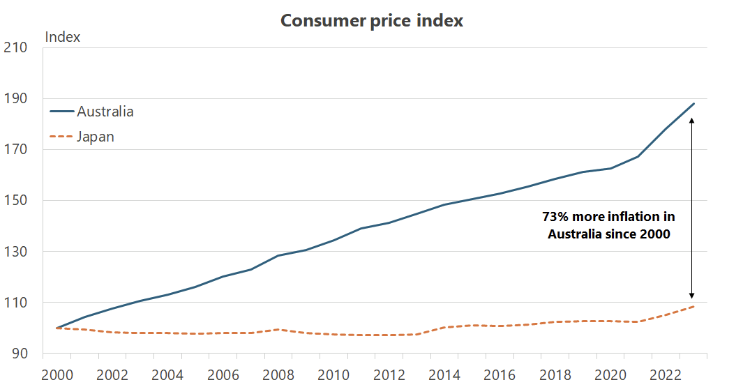 Japan’s domestic consumer prices have also consistently grown more slowly than Australia’s, so when the currencies are of equal strength it makes for a relatively affordable trip to a country full of friendly people and wonderful attractions.