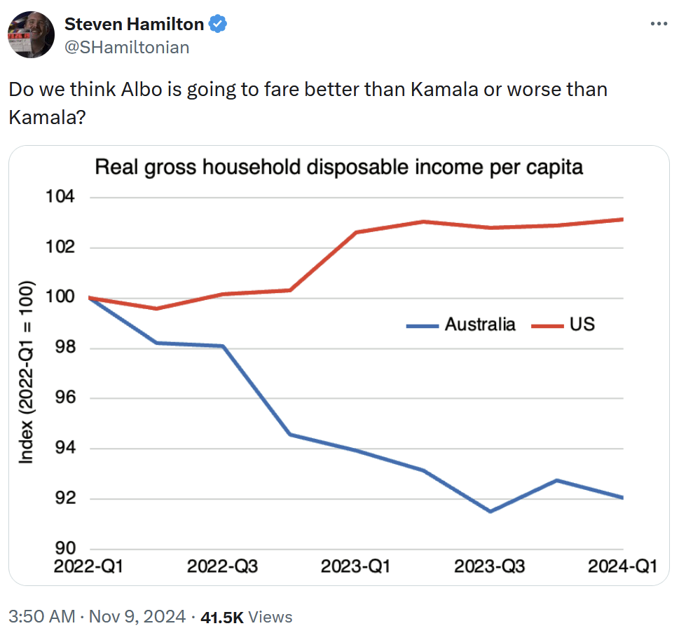 As I discussed on Monday, inflation played a major role in the recent US election. And I think it’s going to play an equally important role in the next Australian federal election, to be held before May 2025.