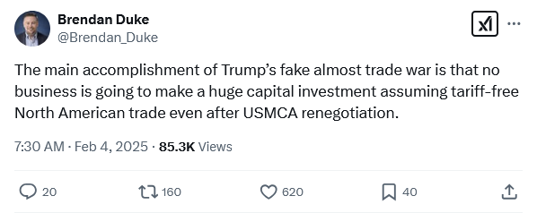 Yes, Trump backed down for 30 days after Mexico and Canada struck token “deals” with the US. Both agreements were pure theatrics, with Mexico doing exactly what it did in 2019 – supposedly sending 10,000 troops to the border, a nice round number that will do nothing to stop fentanyl – while Canada simply rehashed what it had already announced in December.