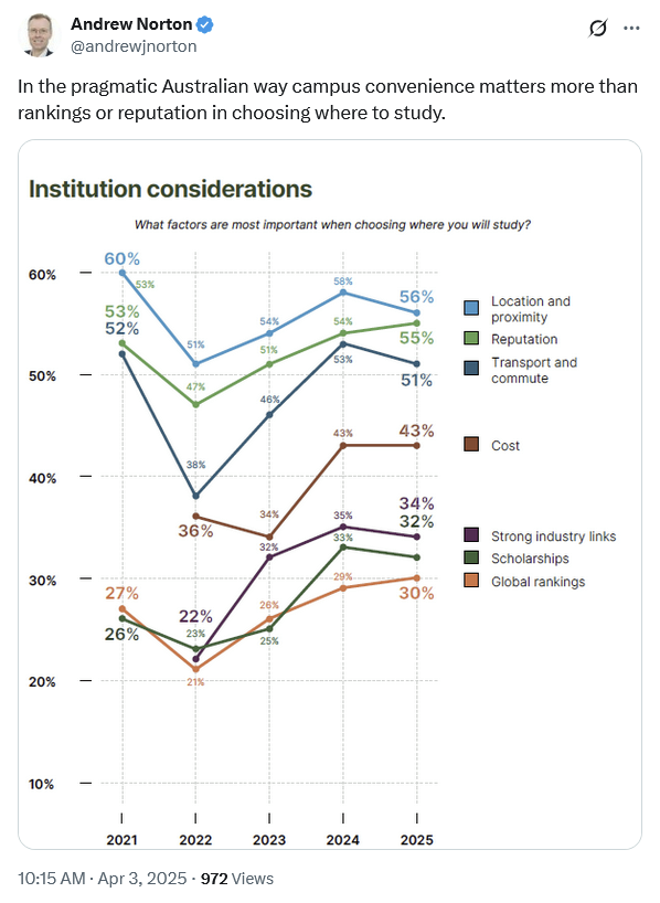 Unlike in the UK or US, Australians generally prefer to study close to home: