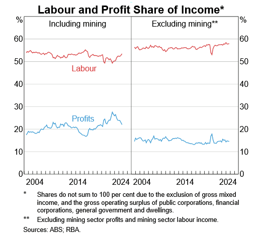 Moreover, the profit share of income—excluding mining, which is largely a price-taker—never materially increased, while the labour share has: