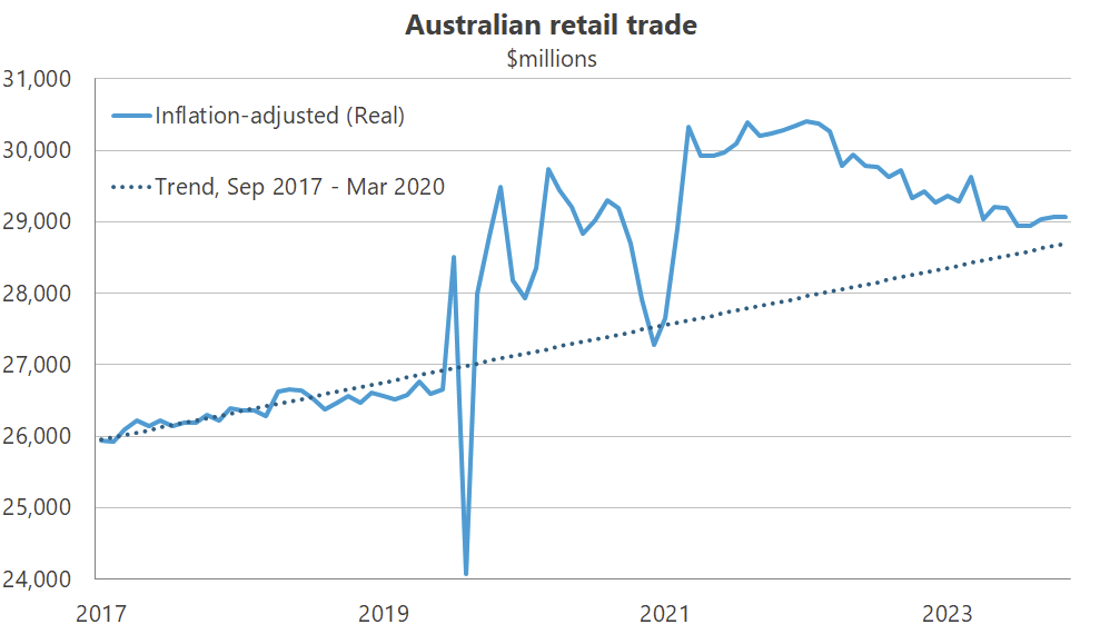 Woolworths and Coles didn’t suddenly get greedy in 2022-23. It’s not possible to “gouge” consumers with higher prices without also reducing quantity demanded unless those consumers have acquired more dollars to pay those higher prices. In Australia, prices and quantities of food increased after the pandemic: