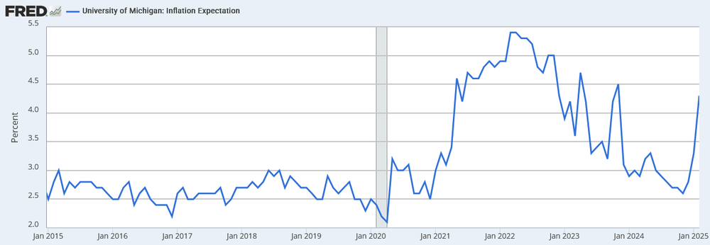 Costly to be sure, but not as significant as many other policy distortions in the US economy. However, policy should never be considered in isolation, and there are other shocks at work. First, the effects of the large positive US labour supply boost from the big up-tick in migration during the Biden years have faded. Second, inflation has already started to increase again, and consumer inflationary expectations—a reasonably good predictor of actual inflation—have shot right back up: