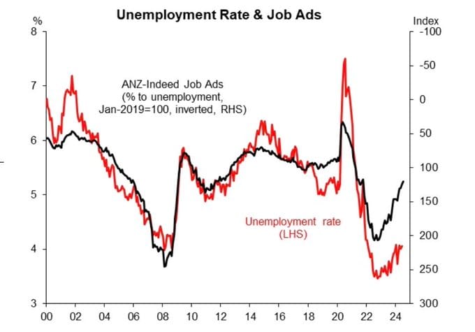 The problem with good news on inflation is it might be indicating bad news for the economy, as if businesses are fighting to remain profitable, they might stop hiring – or even fire people. On that note, job ads fell this week to a three-year low, and they tend to lead unemployment: