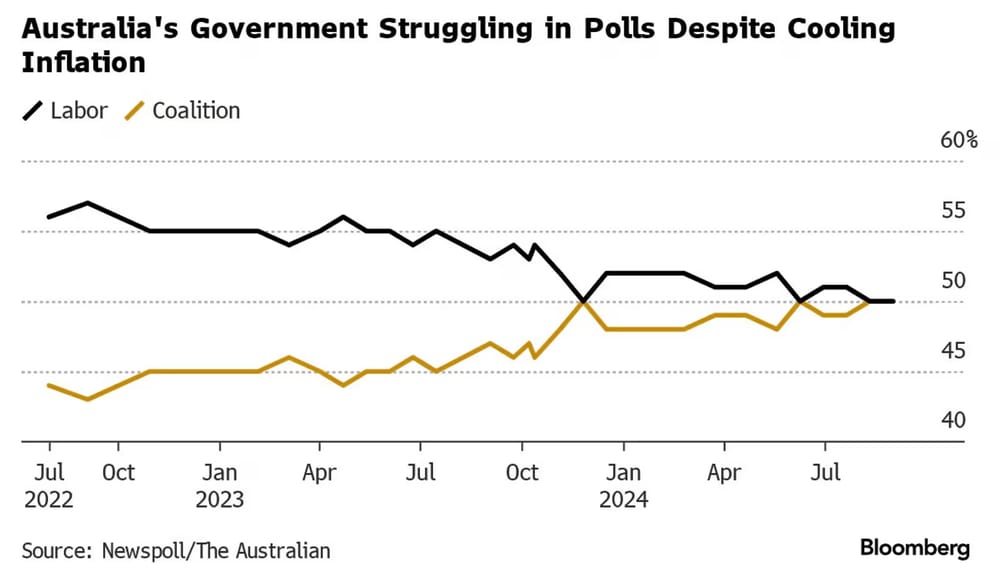 Put it all together and we’re in for a tough several months, which spells trouble for Chalmers and might be why he’s trying to deflect blame onto the RBA. Recent polling by Redbridge “found only 24% of Australians could name a government policy that had improved their lives”, and the latest Newspoll has the two parties neck-and-neck: