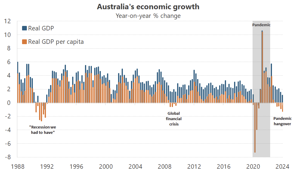 The current per capita recession isn’t something that can be solved with cost-of-living handouts and energy subsidies. It’s the inevitable hangover of prior policy decisions, and the best way to fix that is to get on top of inflation (which the RBA is doing, albeit more slowly than its OECD peers) and improve productivity, which in the long-run is the only sustainable way to increase real wages.