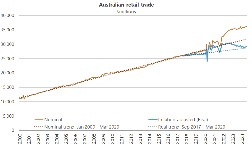 The June quarter national accounts will probably show that real GDP per person contracted for a fifth consecutive quarter, officially making the current period Australia’s worst and longest per capita recession since the 1990-91 “recession we had to have” (excluding the pandemic).