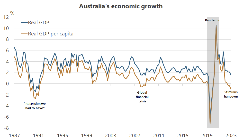 Excluding the pandemic, it’s Australia’s first per capita recession since 2009, and only our second since the depths of the early-1990s “recession we had to have”.