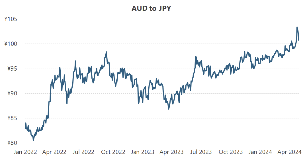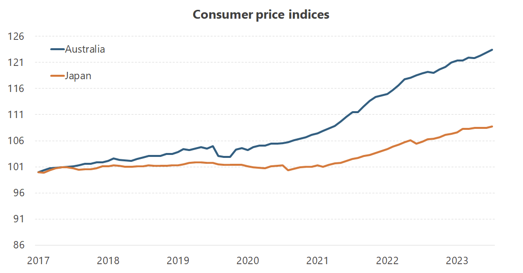 One of the reasons cited for the surge in tourist numbers is the collapse in the value of the yen. Even against the woeful Aussie dollar, the yen has performed poorly in recent years; since the start of 2022, it has lost over 20% of its value and is now below parity (1 yen to 1 cent) for the first time in a decade.