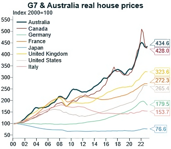 Eyeballing the above chart, the country most like Australia – but one which hiked rates much earlier – looks to be Canada. Our Commonwealth cousin also ticks a few other boxes, such as runaway house prices.