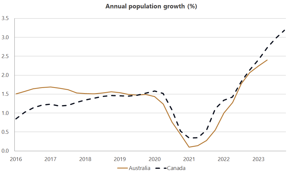 Last but not least, Canada has also experienced rapid population growth in the post-pandemic era.