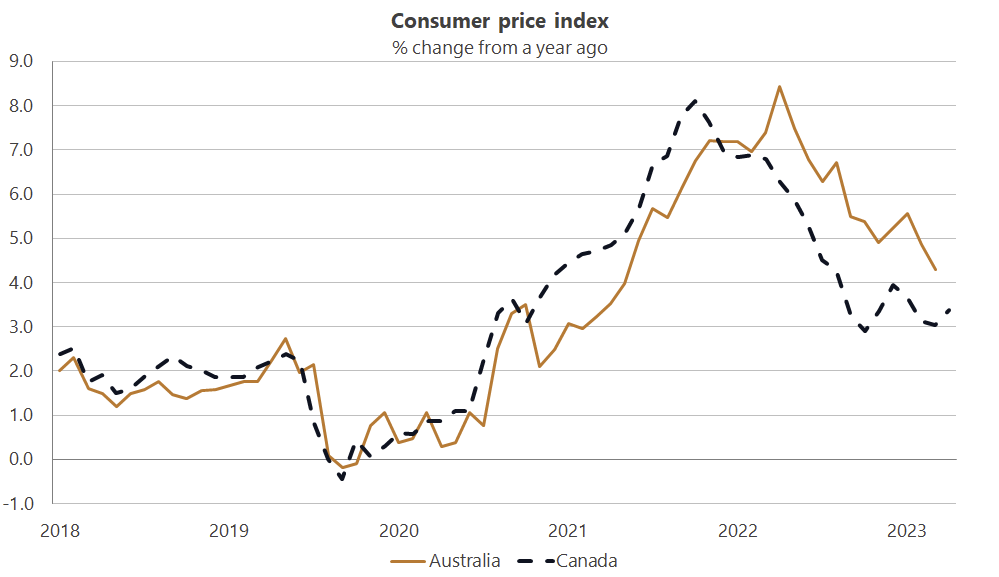 Ok, so we have a few things in common. But the pertinent question is how did Canada compare to Australia in terms of inflation, which is clearly the most important indicator for our respective central bankers when considering whether to cut (or hike) interest rates. Let’s take a look.