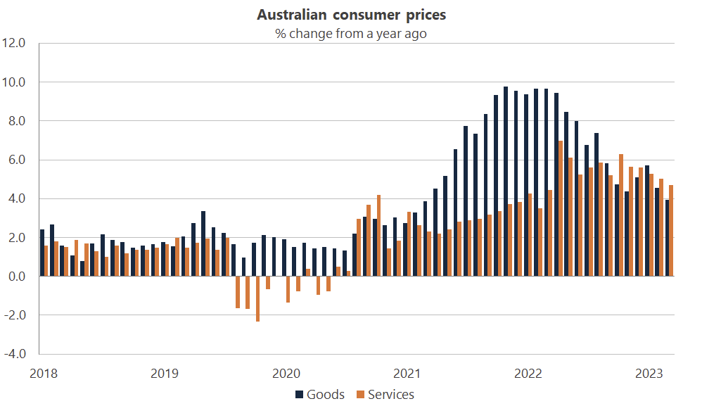 But there is good news! When we break the data down into their two main subcomponents, goods and services, we can see that most of the inflation is now coming from services. That means that the easing of global supply constraints has flowed through to Australia.