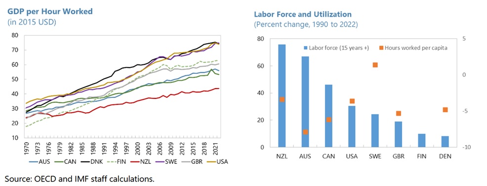But while we wait for those to be developed, it turns out that our cousins across the ditch—who disbanded their own PC in February 2024—are stuck in something of their own productivity quagmire. In fact, according to a new special report by the International Monetary Fund (IMF), in recent years New Zealand has performed even worse than Australia.